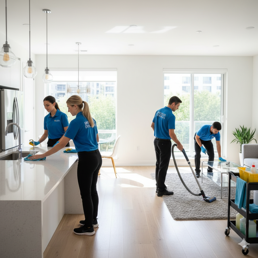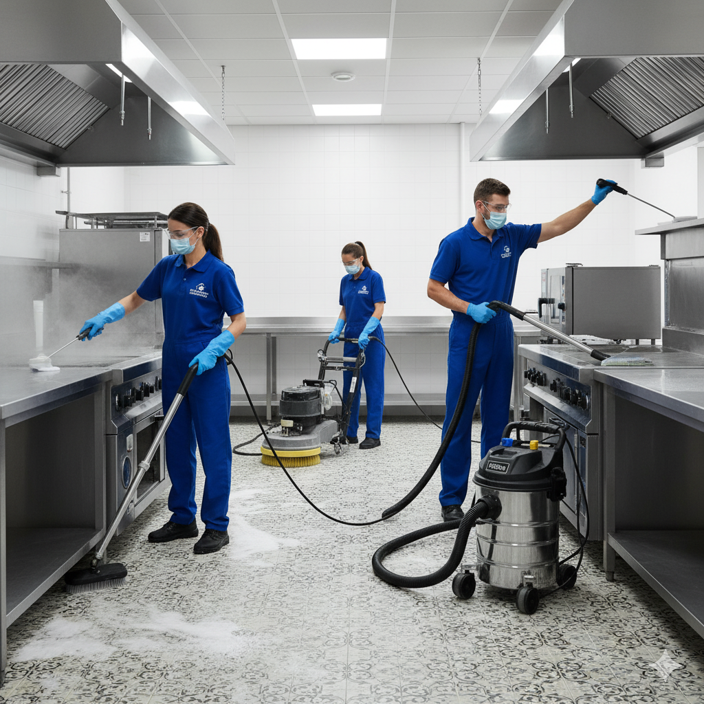 Professional team performs thorough cleaning.
